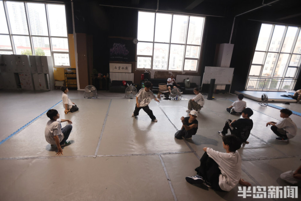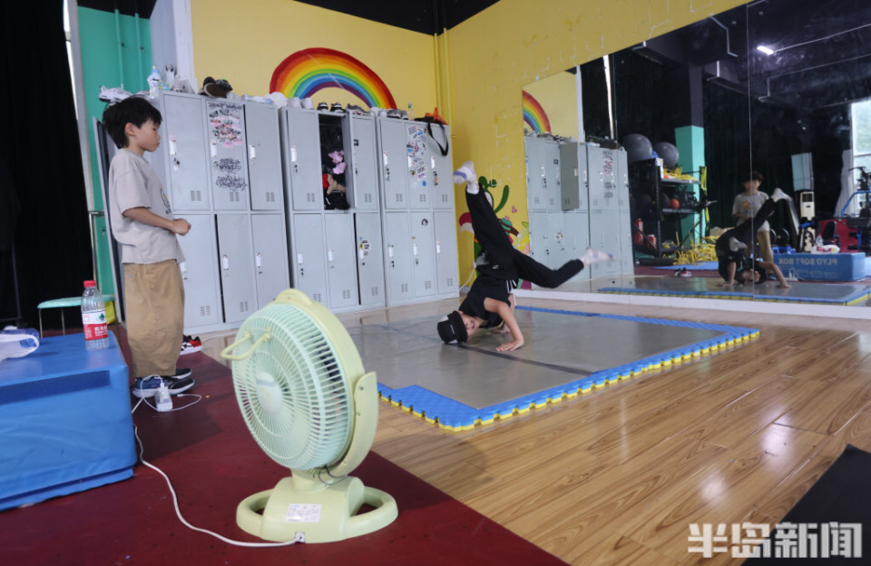 暑期的训练中心更显热闹,除了本地队员,还迎来了不少跨省求学的面孔——有从新疆飞来的小姑娘,也有江苏少年跟着母亲专程赶来“拜师”11岁少年。“自从霹雳舞成为奥运会正式项目,全国的关注度一下子上来了。”青岛市霹雳舞训练基地主教练李帅介绍道。这个2021年成立的训练基地,正见证着这项运动的蓬勃生长,训练中心挂着一幅字,“滴水穿石”,每次训练也是鞭策着队员们不断前进和努力。